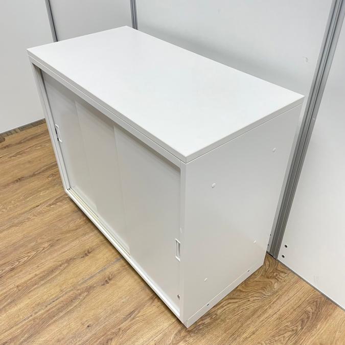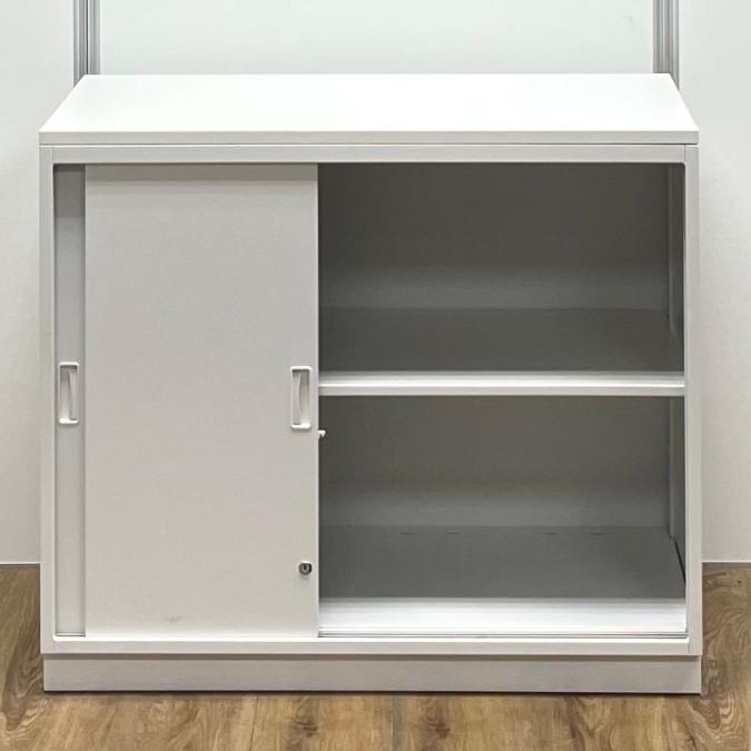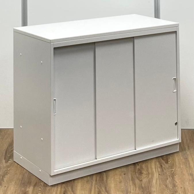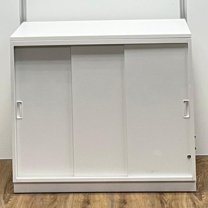 【商品入替のため、残り1台限り】イトーキ製 シンラインシリーズ ホワイトカラー ホワイト天板付き 3枚引き戸 高さ770サイズ 2段 (棚1枚) 使いやすさに配慮・3枚引き戸タイプ 引き違い書庫!!- 京都東寺店