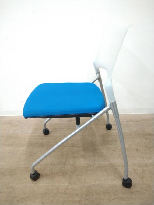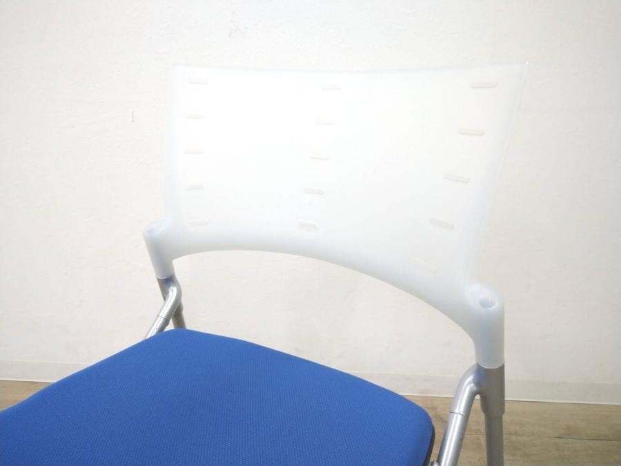 【グッドデザイン賞で品質は折り紙付!平行スタックで省スペース収納!】■イトーキ(ITOKI)製 マノスチェア ネスティングチェア 会議用 背面ヌードタイプ ■ブルー×ホワイトシェル