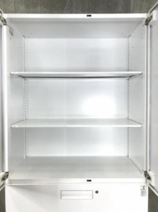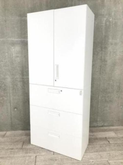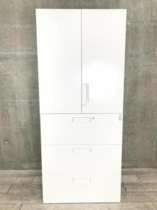 【収納量抜群の書庫セット!観音開き+引き出しタイプの人気の組み合わせ!】■コクヨ(KOKUYO)製 エディアシリーズ(EDIA) 両開き+3段ラテラル 書庫セット ハイキャビネット ■シリンダー錠 ■ホワイト