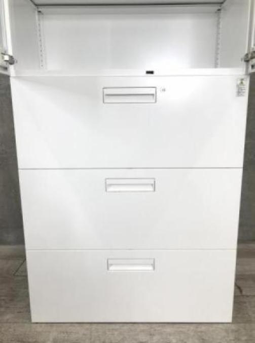 【収納量抜群の書庫セット!観音開き+引き出しタイプの人気の組み合わせ!】■コクヨ(KOKUYO)製 エディアシリーズ(EDIA) 両開き+3段ラテラル 書庫セット ハイキャビネット ■ホワイト ■シリンダー錠