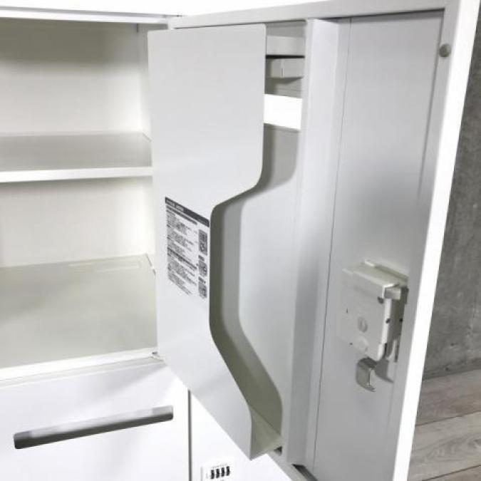 【商品入替のため、残り4台限り】オカムラ製 レクトライン ホワイト 4人用 投函口有り ダイヤル錠 ナチュラル木目調天板 フリーアドレスオフィスの必需品! ダイヤル錠式で鍵の持ち運び要らず! 4人用パーソナルロッカー!!※非常解除キーはついていません
