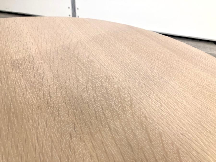 天板エッジの丸みが生み出す優しい手触りと、古典建築にもみられるエンタシス形状のデザインが描きだす丸脚の柔らかなライン。