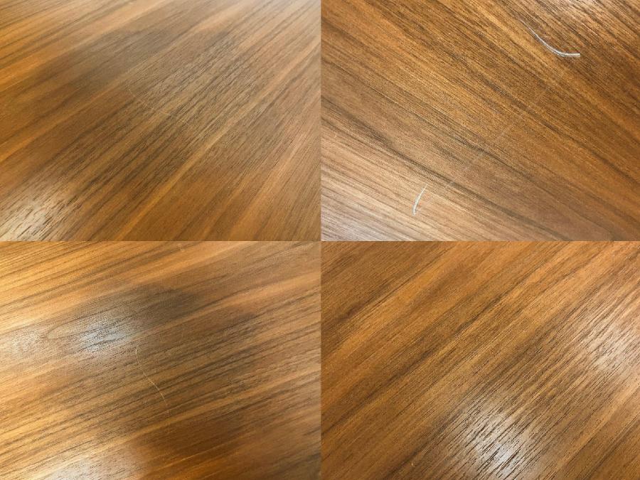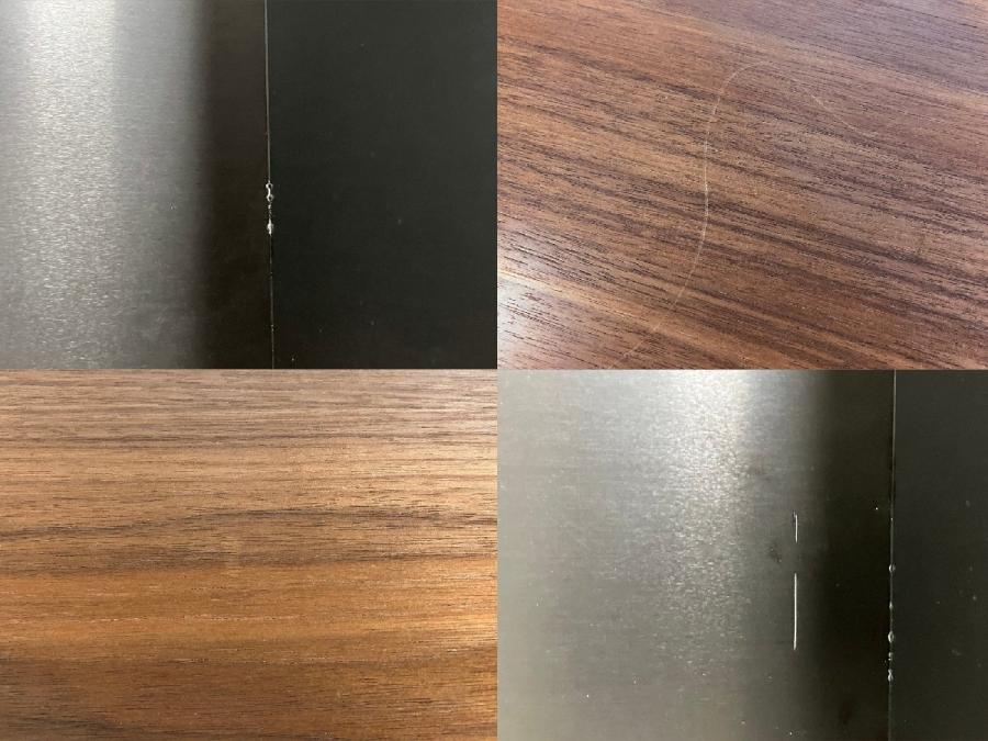 - 目立つ箇所あり傷・凹みが多数、深い傷・凹みが一部ある。(例、天板、幕板、棚板、サイド部分、脚部等にある。)