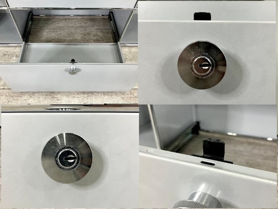 - 一部不具合ありそ引出の開閉不可、施錠不可、棚板無しといったの書庫の本来の効用を果たすための機能以外の一部が使用不可(例、扉、引出の開閉がしづらいなどがある。 )