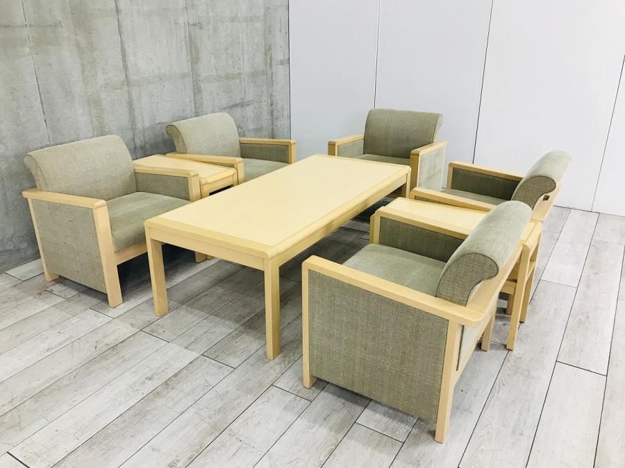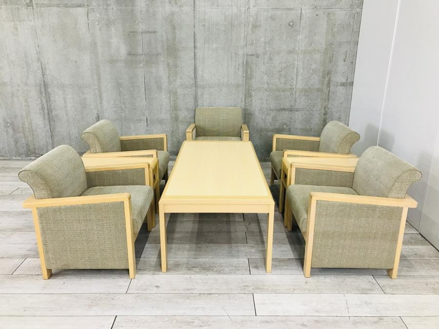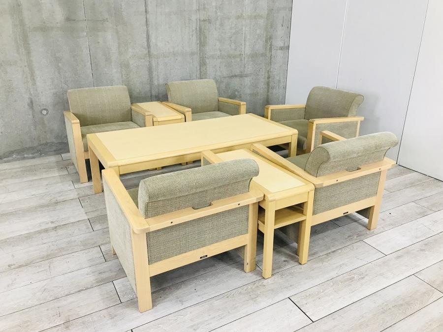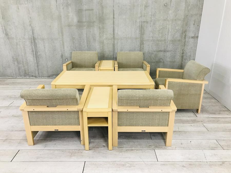 【1Pソファー×5+センターテーブル×1+サイドテーブル×2の応接セット】【アダル製の応接セット一式が入荷!】■アダル(ADAL)製 応接セット一式 ■木目ナチュラル 【ABW商材】【関東倉庫在庫品】【弊社使用欄:A00966631/A00966632/A00966633】- 全店共通商品