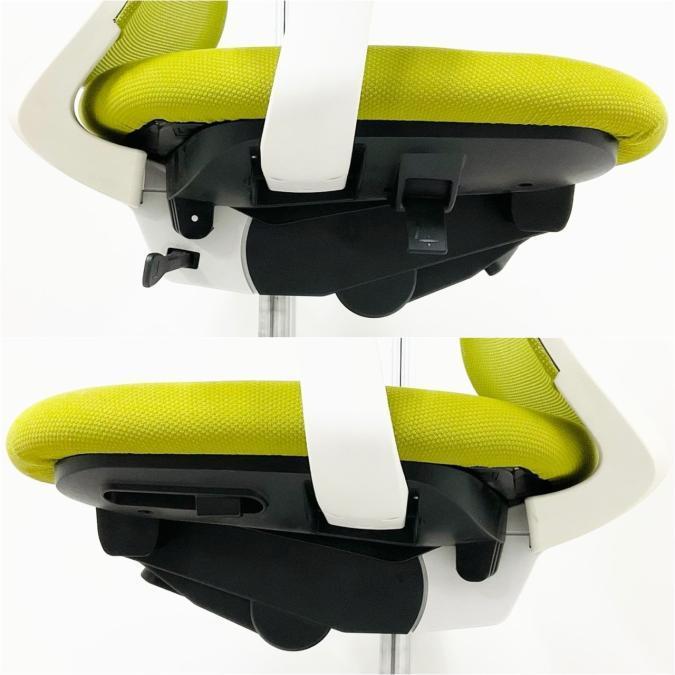 - 座面の高さは上下に90㎜、奥行は前後に50㎜調節可能。さらに骨盤を支えるポスチャーシート採用で着座時の前滑りを防ぎます。
