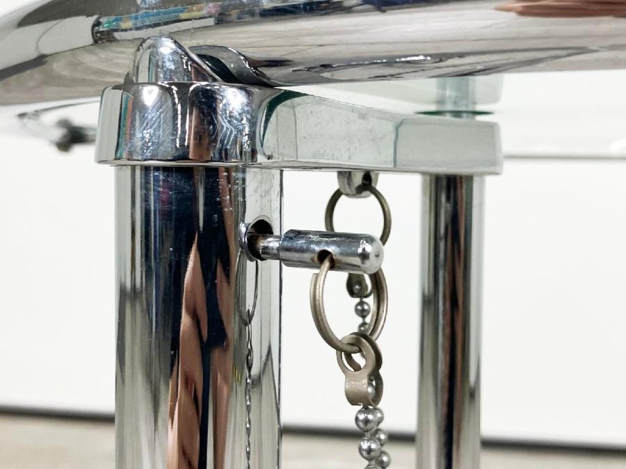- 一部不具合あり天板歪み、アジャスター無し、キャスター使用不可ようなそのテーブルの本来の効用を果たすための機能以外の一部が使用不可な状態。(例、キャスターロッ ク機能使用不可、棚板無し等がある。)