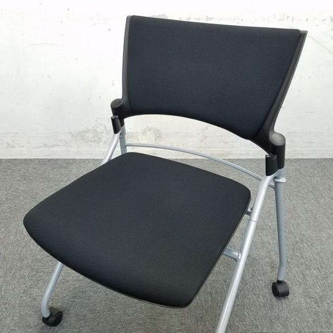 【関西倉庫在庫品】【平行に重ねて省スペース!使い勝手抜群のミーティングチェア!】■イトーキ マノスシリーズ ネスティングチェア 座ブラック 背ホワイト キャスター付【ITOKI Manos】【W】