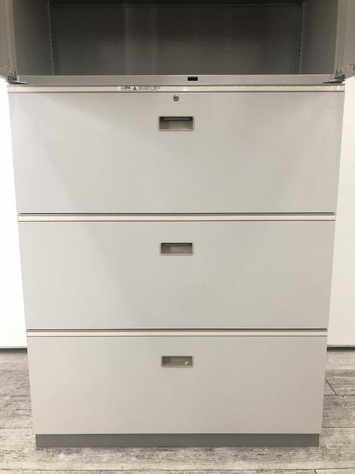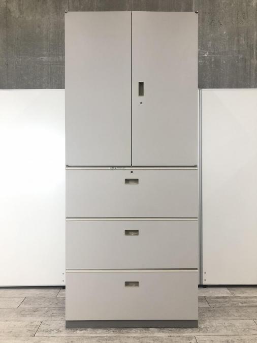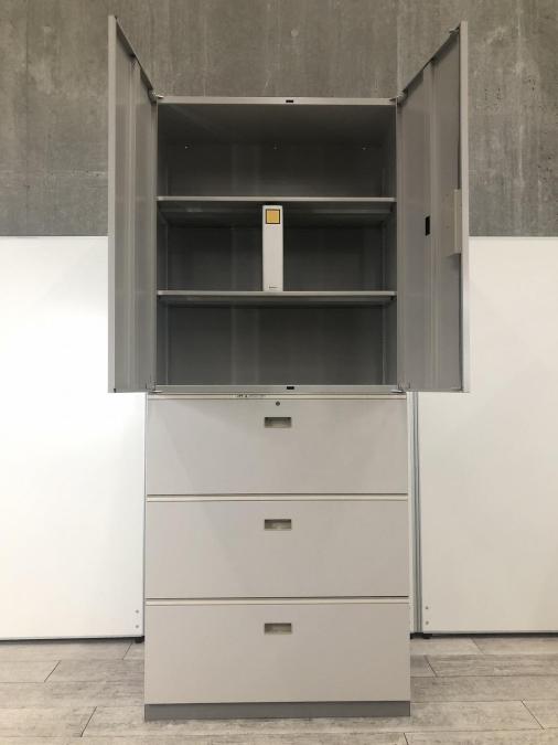 【倉庫在庫品】【これ1台で書類整理の問題が解決!上下で6段分の大容量収納!】■イトーキ (ITOKI)製 シンライン ハイキャビネット 両開き+3段ラテラル 書庫セット ■グレー ■シリンダー錠
