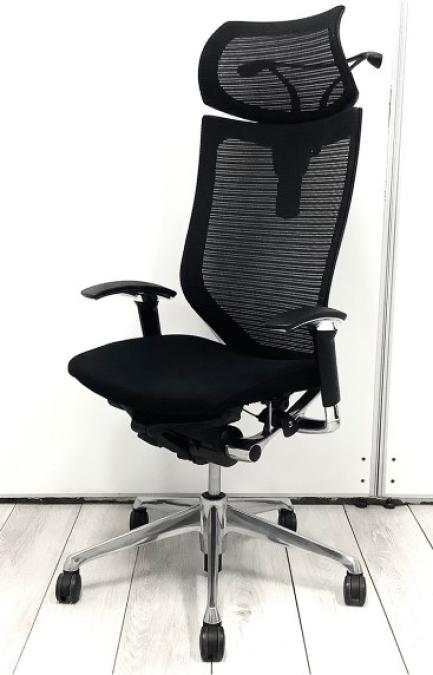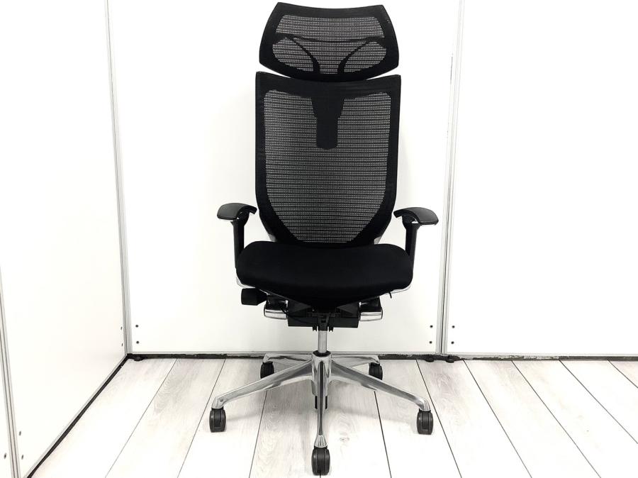 【オフィスの執務室、会議室におすすめ!】■オカムラ(okamura)製 バロン(Baron)チェア 肘付き ハイバック ■背・座面メッシュ ■可動肘 ■ヘッドレスト付き ■ブラック【硬めの座面が大人気!国産メッシュチェアの代表格!】