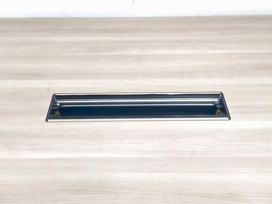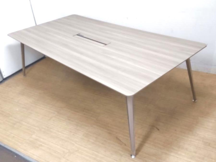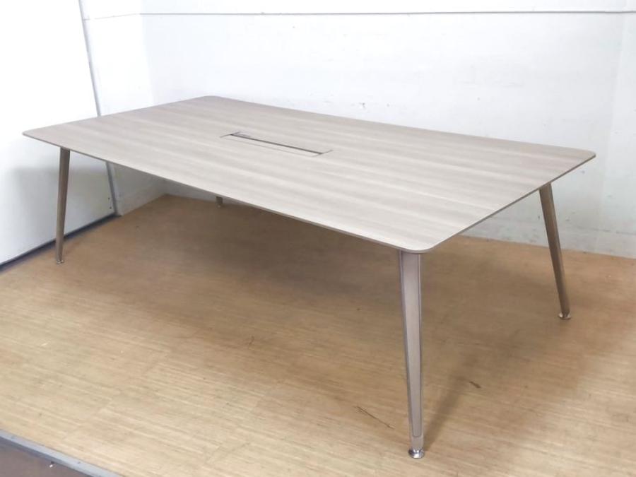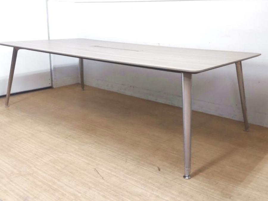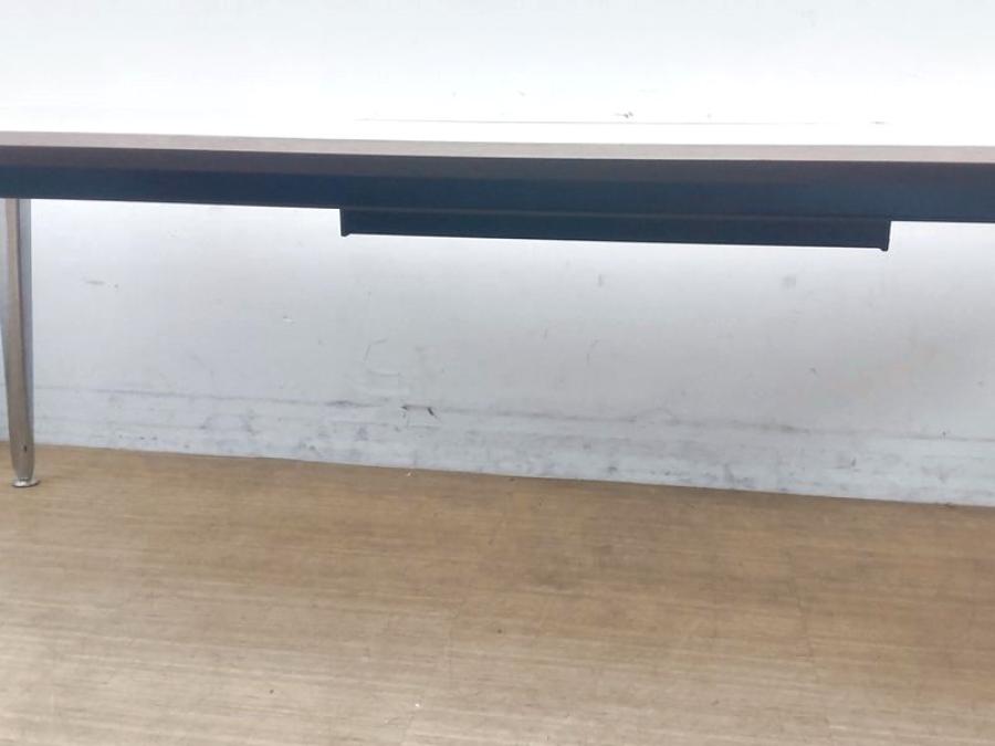 【打痕ありお安く】オカムラ 高級会議テーブル プリシード W2400×D1200 おしゃれな木目プライズウッドミディアム色 配線天板- 名古屋千種店