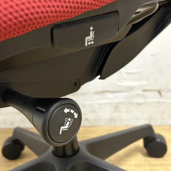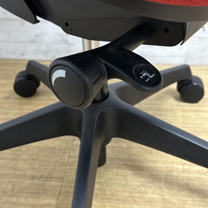 - 座面右下のダイヤル操作で、リクライニングの強弱調整が行えます。これまでのダイヤル式よりも、少ない回転数で、最弱?最強の調整が可能です。