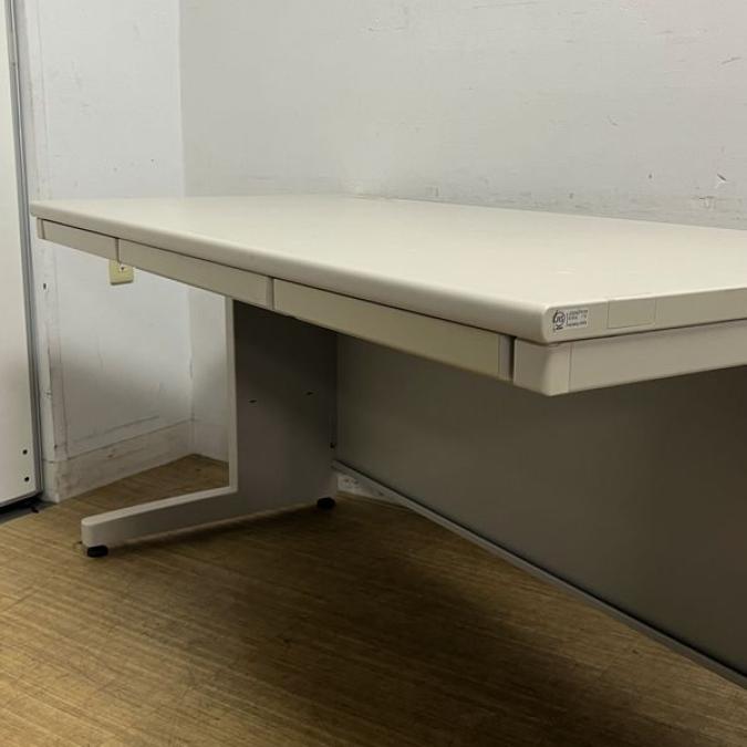 【天板の左角に小さな欠け有(お写真12枚目)】コクヨ BS 平机 ゆったりと使えるW1400サイズ ニューグレー 引き出し付きで収納可能- 名古屋千種店