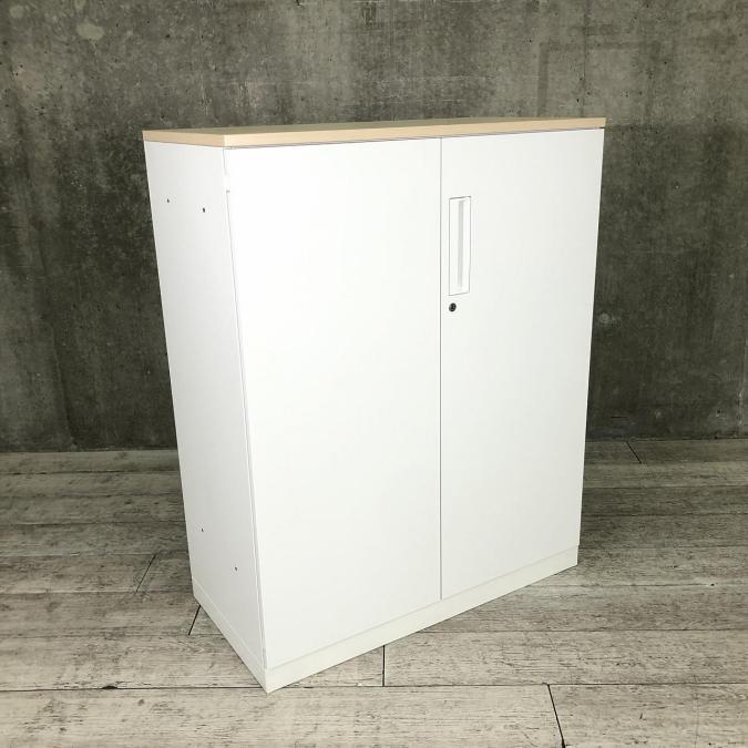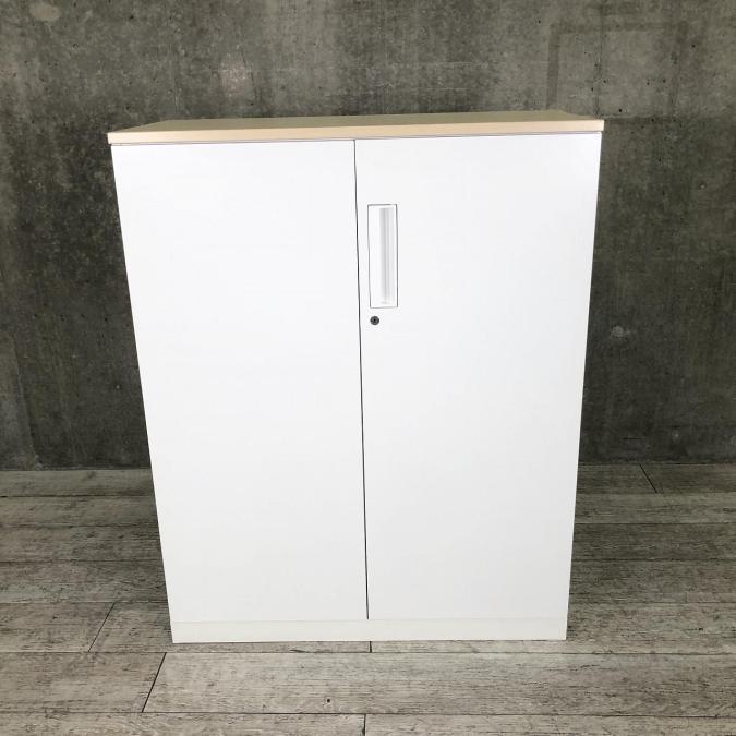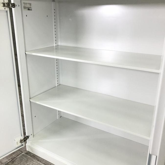 【収納物がひとめで分かる両開き戸タイプ!】■コクヨ(KOKUYO)製 エディア(EDIA)シリーズ 両開き書庫 ローキャビネット H1130㎜ ■天板・ベース付 ■ホワイト ■シリンダー錠【IB】