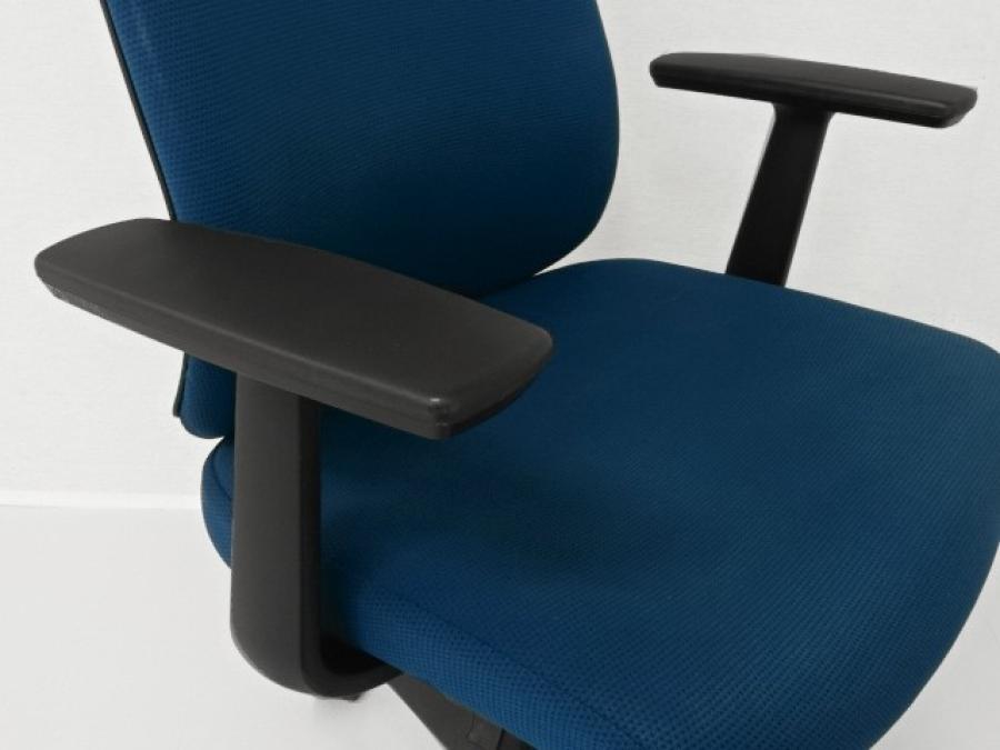 上下昇降機能に加え、ロッキングフリー、奥行調整機能、固定肘付き、人気のブルーカラーでオススメチェアとなります。
