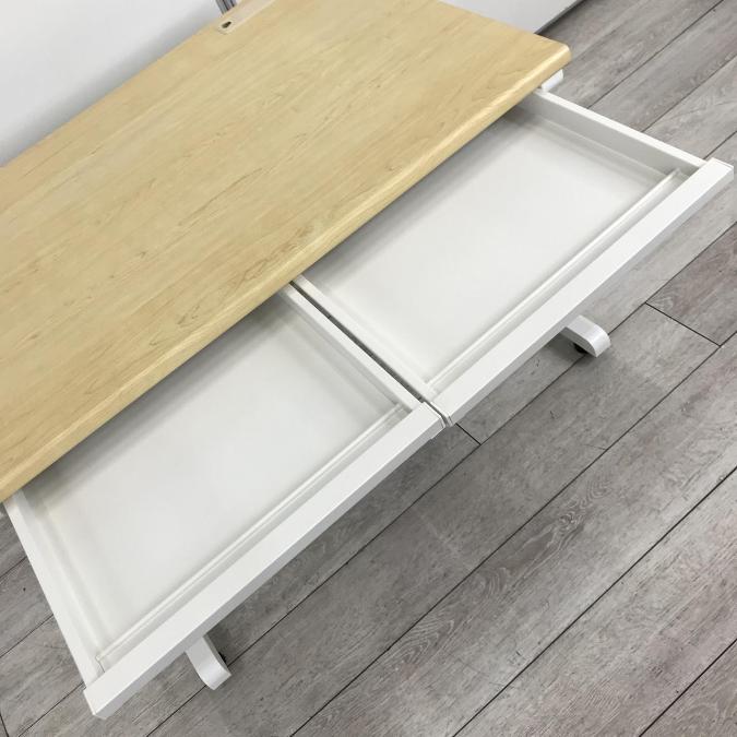 【ゆとりのあるワークスペースで作業効率アップ!オシャレなナチュラル木目カラーの平デスク(W1000×D700×H700)入荷!】■平机(W1000×D700×H700) ■天板木目ナチュラル×ホワイトボディー ■配線口付 ■幕板付【広々スペース!上長席としても!】- 新大阪店