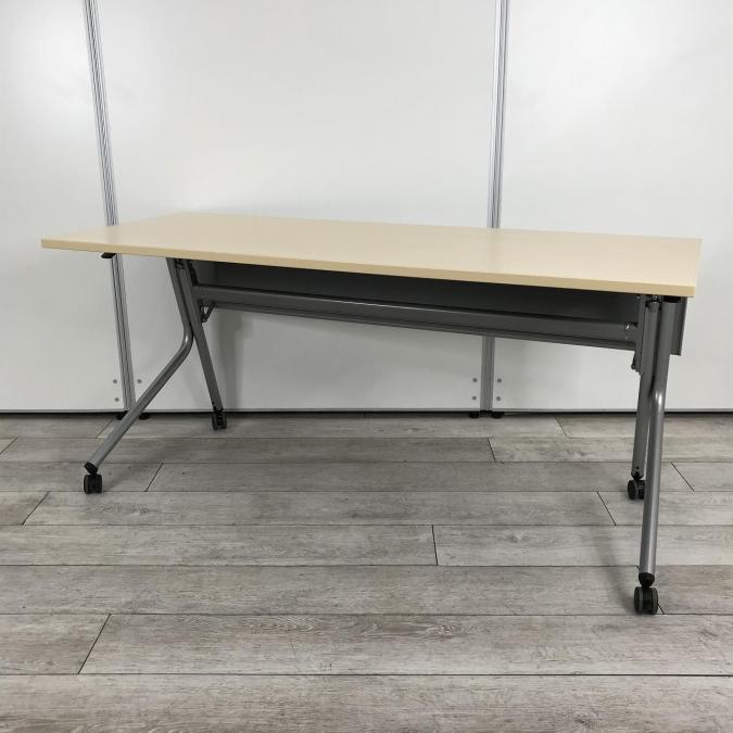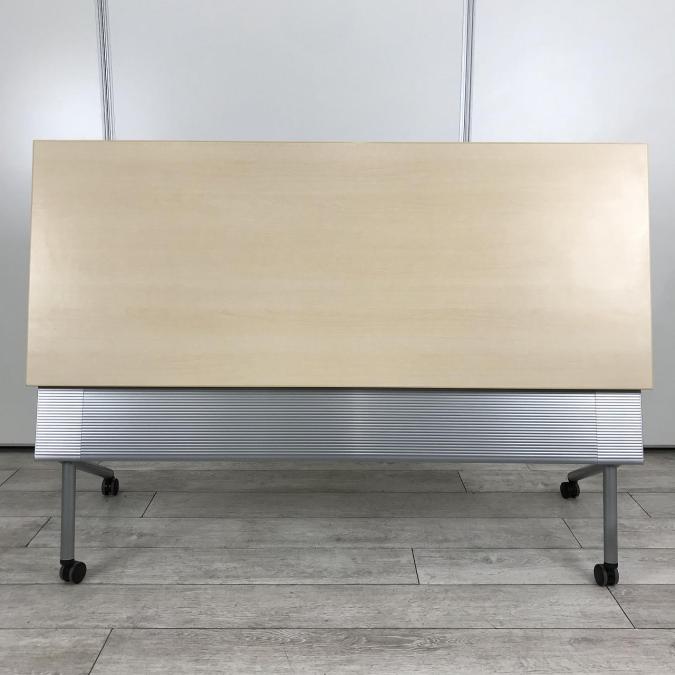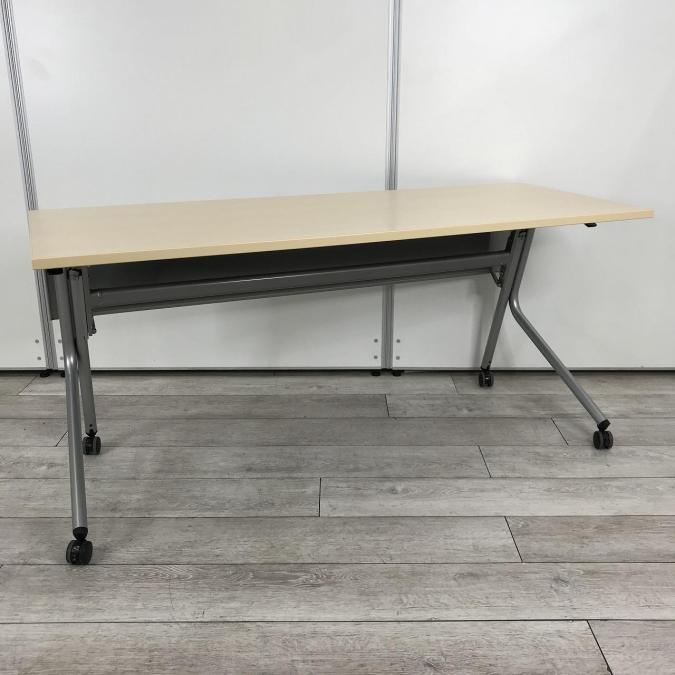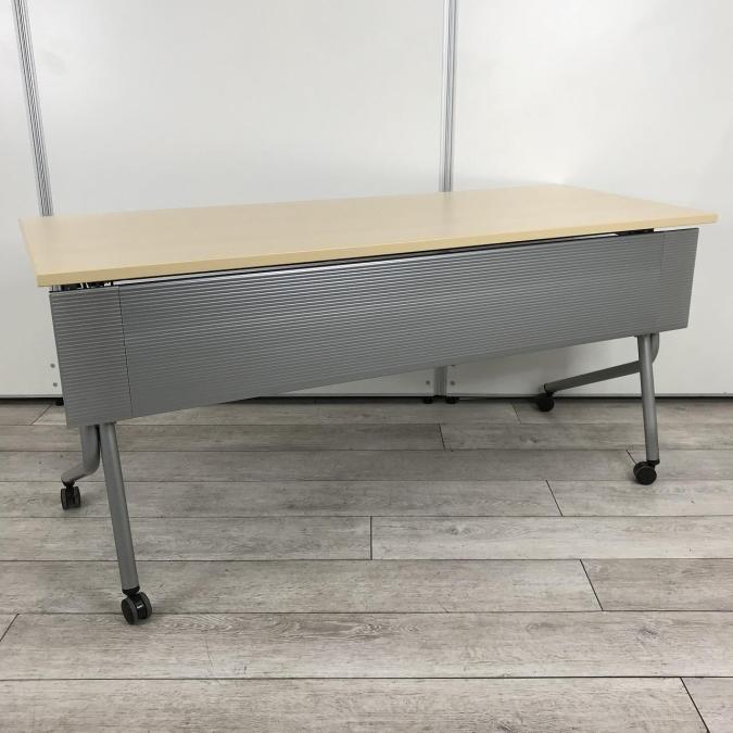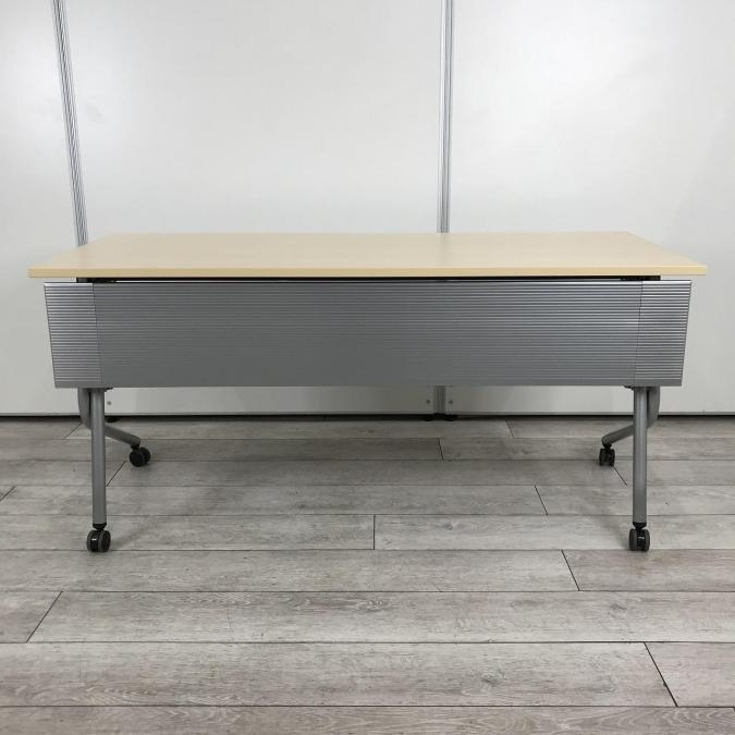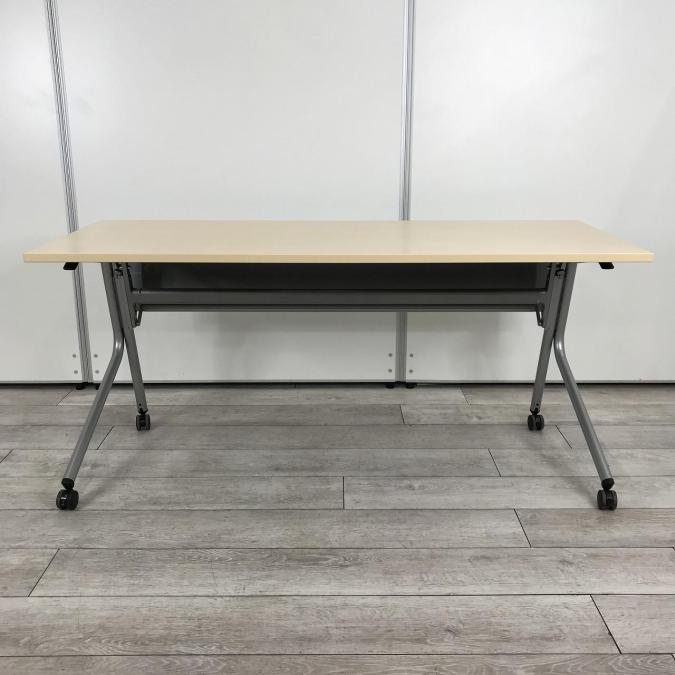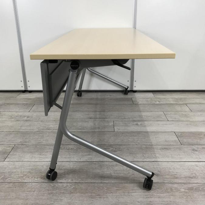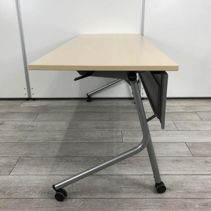 【定価約8万円】【天板ナチュラルカラーの人気サイドスタックテーブル!!横幅1500mmサイズ!!】■オカムラ(okamura)製 ネスティア サイドスタックテーブル 折り畳みテーブル ■W1500×D600㎜ ■木目ナチュラル- なんば日本橋店