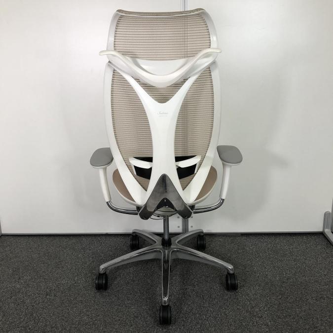 【即完売必至!人気のヘッドレスト付!】■オカムラ製 サブリナチェア スマートオペレーション 可動肘付 ベージュ エクストラハイバック ※ヘッドレストの裏側に塗装剥がれがあるためお安く!サーキュラーバリューCO2削減量の算出について
