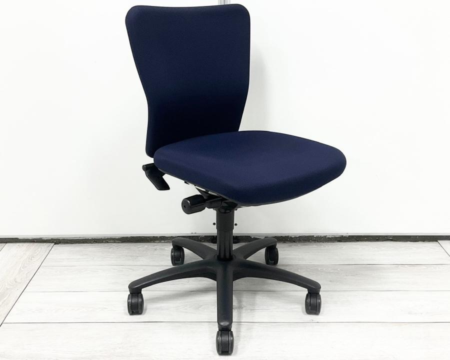 オカムラ カロッツァ 肘無しチェア ローバックモデル ダークブルー×ブラックフレーム ※使用感強め・一部の部材欠けのため特価