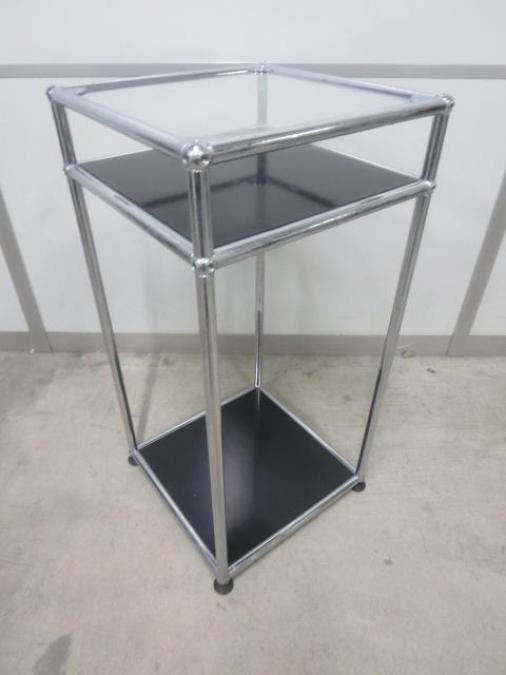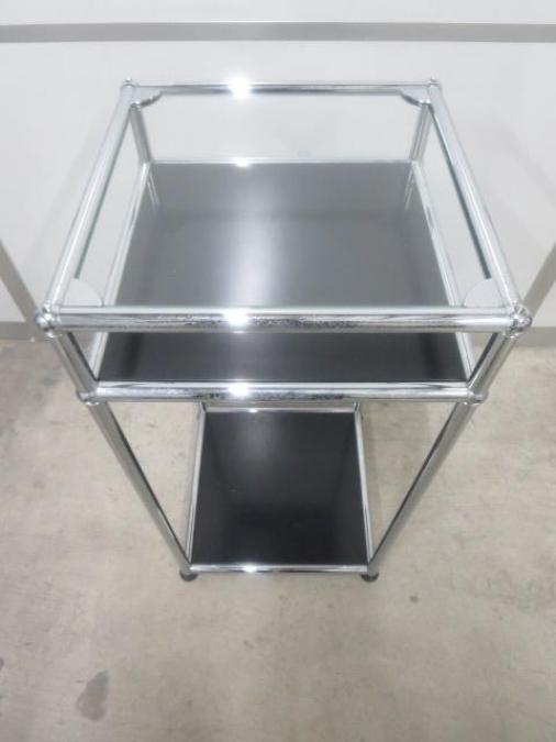 【スタイリッシュなデザイン!】■USMハラー 1連2段キャビネット ガラス天板 電話台 花台 受付台【テレホンスタンド】- 川崎店