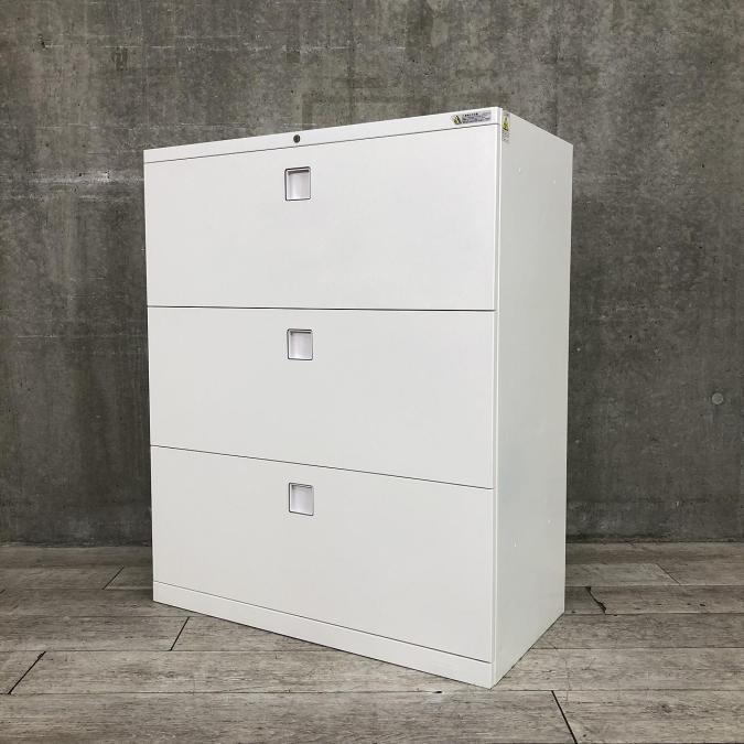【ファイル収納にオススメ!高品質で使いやすい人気シリーズの3段ラテラル書庫!】■オカムラ(okamura)製 レクトラインシリーズ 3段ラテラル書庫 ローキャビネット H1100㎜ ■ホワイト ■シリンダー鍵 ■天板付き(天板:ホワイト) ※日焼け有