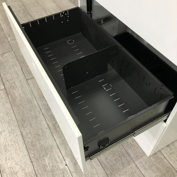 【使いやすさで選ぶならコレ!大容量の三段キャビネット】■オカムラ(Okamura)製 レクトラインシリーズ(Rectline) 3段ラテラル書庫 ローキャビネット ■天板付き ■シリンダー錠 ■ホワイト