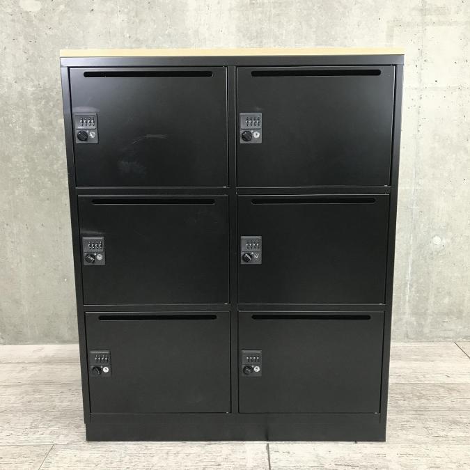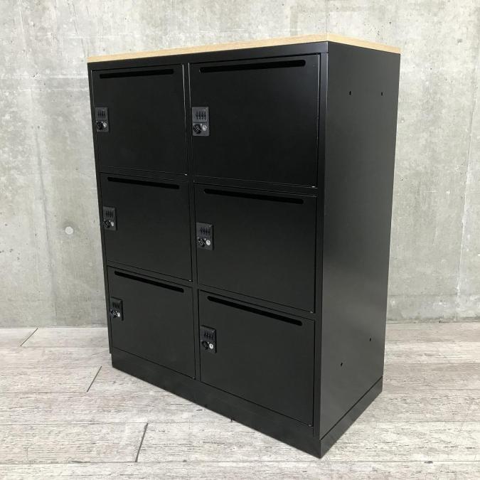 【商品入替セール】珍しいブラックカラーのメールロッカーが入荷!スタイリッシュなオフィスに! ■井上金庫製 6人用パーソナルロッカー ■ダイヤル錠 ■投函口付き ■本体ブラック 天板ナチュラル【フリーアドレスやコワーキングオフィスの相棒!】☆★大特価セールはこちらのキーワードで検索☆★→→【大放出】- 埼玉本店