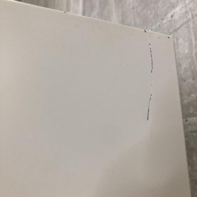 - あり黄ばみ・変色が広い範囲にうっすらある、、広い範囲にある。(例、天板、正面、背部、サイド部分にある。)