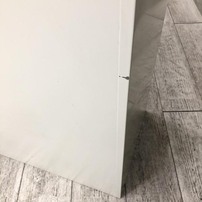- かなり強い黄ばみ・変色が商品全体にある。(例、天板、正面、背部、サイド部分にある。)
