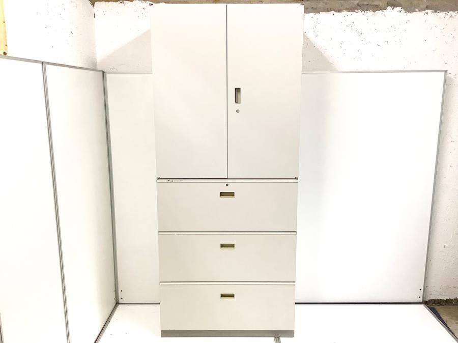 【倉庫在庫品】【これ1台で書類整理の問題が解決!上下で6段分の大容量収納!】■イトーキ (ITOKI)製 シンライン ハイキャビネット 両開き+3段ラテラル 書庫セット ■グレー ■シリンダー錠
