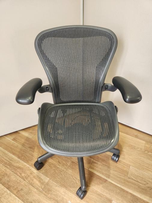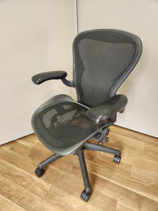 【ワーキングチェアの名作!】■ハーマンミラー アーロンチェア 固定肘 Bサイズ スタンダード ランバーサポート付 ※キズあり商品のためお安く! 【Herman Miller Aeron Chair】A01029474