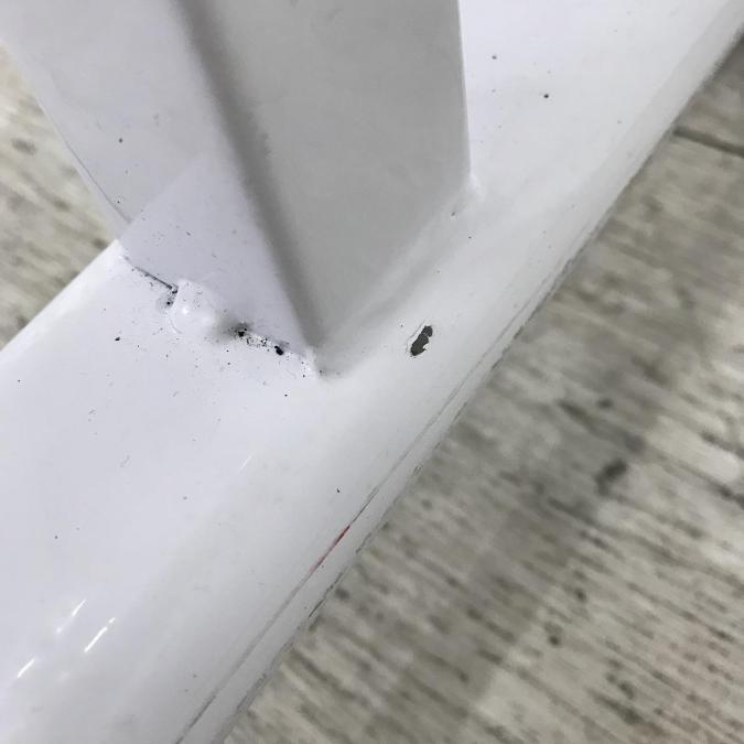 - 目立つ箇所複数あり深い傷・凹みが商品全体にある。(例、板面、受け、サイド部分、脚部にある。)