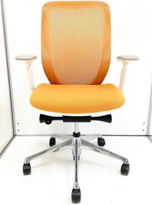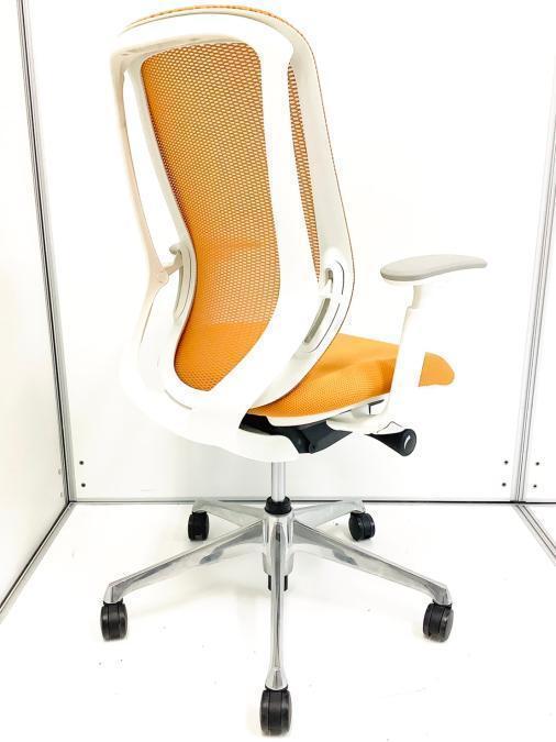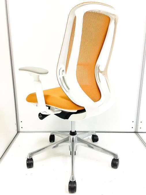 【在庫入替セール品!】【背のカーブを変えられる新感覚のオフィスシーティング!】■オカムラ シルフィーチェア 可動肘付 オレンジ ハンガー付 ホワイトフレーム ■新感覚のオフィスシーティング!【Okamrua Sylphy】