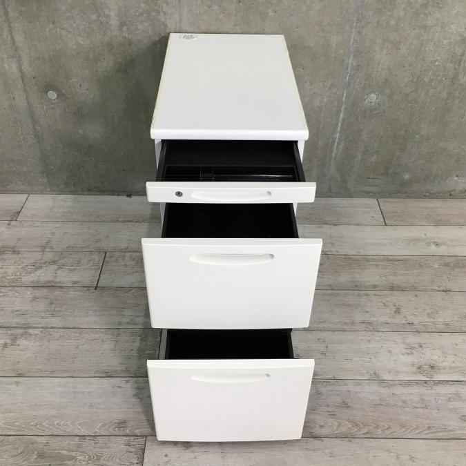 【在庫入替セール品】【定価約7万円】【ワークスペースの追加にも使える便利アイテム!】■オカムラ SDシリーズ 3段脇机 サイドデスク ■高さ:700mm 色:ホワイト シリンダー錠 【デスクサイドキャビネット】- 在庫数
