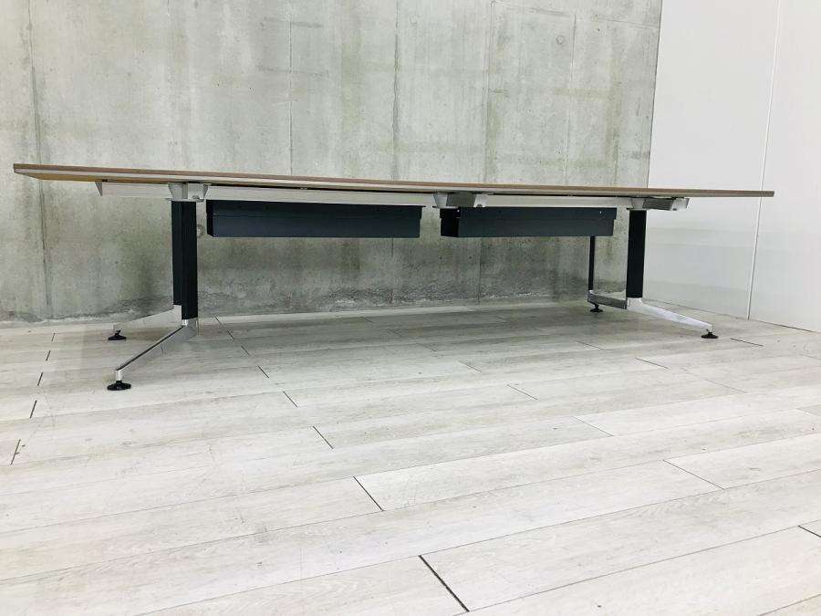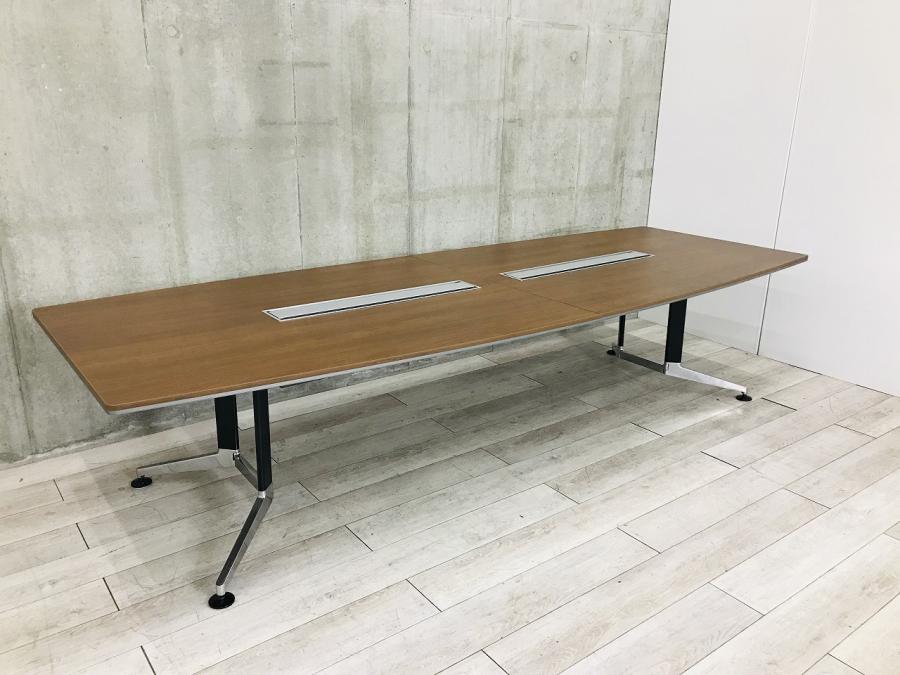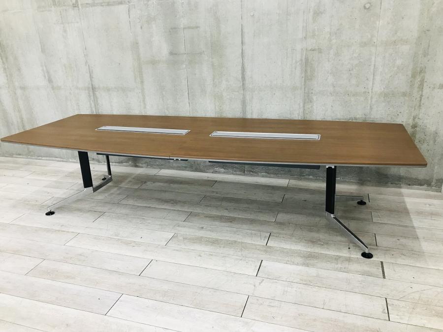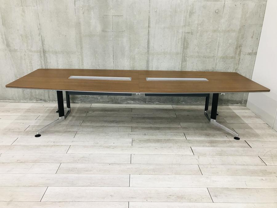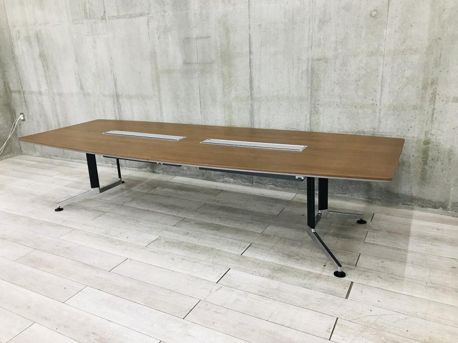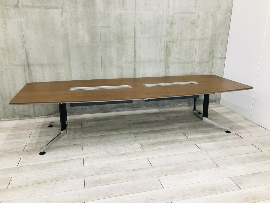 【上質な空間を演出!幅3200mmの大型テーブル!】■コクヨ製 会議用テーブル W3200×D1200mm 配線ボックス付 ■舟形天板2枚 【弊社使用欄:A00965226】- 日本橋店