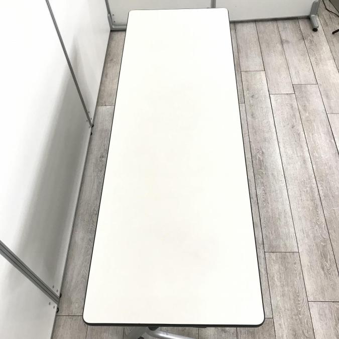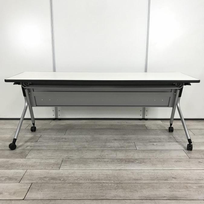 【使い方自由自在!フレキシブルに活躍!】■プラス製 サイドスタックテーブル W1800×D600mm ホワイト ■足元を隠せる幕板パネル付!- 川崎店