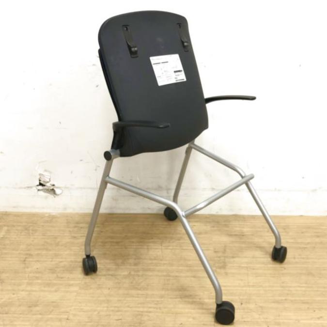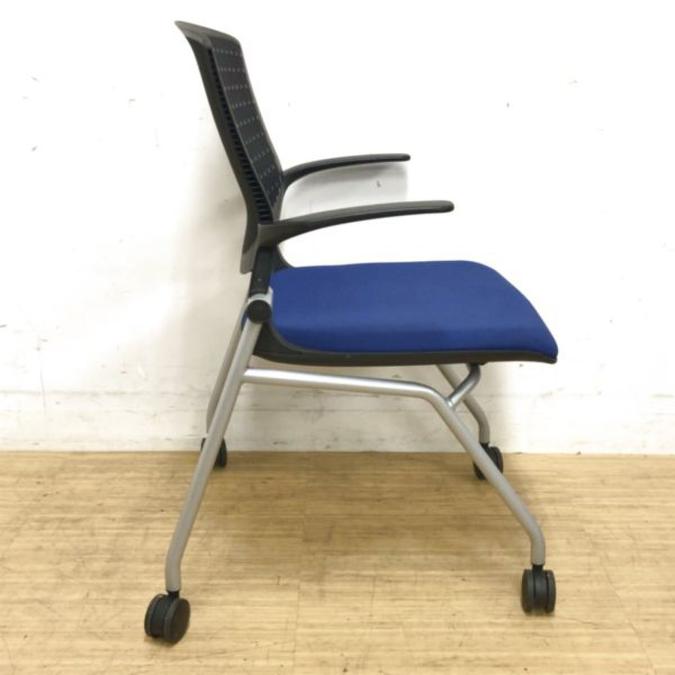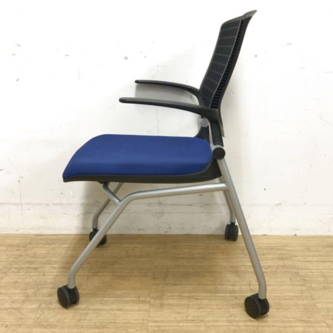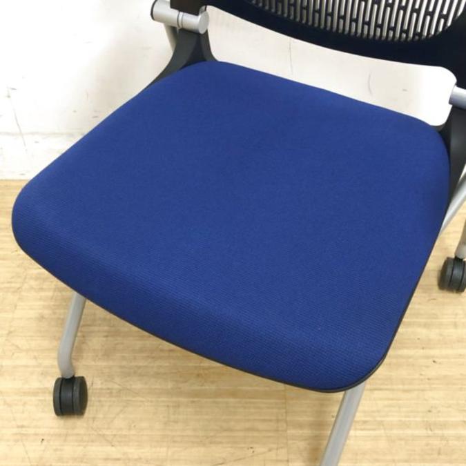 小肘付ネスティングチェア/背面クッション付き/ネイビー/オカムラ製/福岡/天神/博多/中古/安い