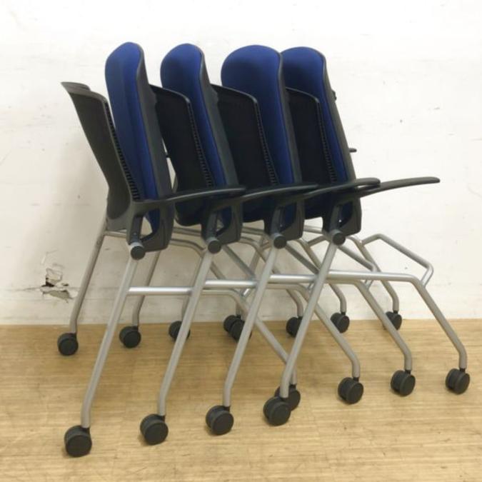 【しなやかにワーカーを受け止める洗練されたデザイン!使わない時はネスティング収納!】■オカムラ(okamura)製 グラータ(Grata) ミーティングチェア ネスティング ■背面樹脂メッシュ ■ブルー