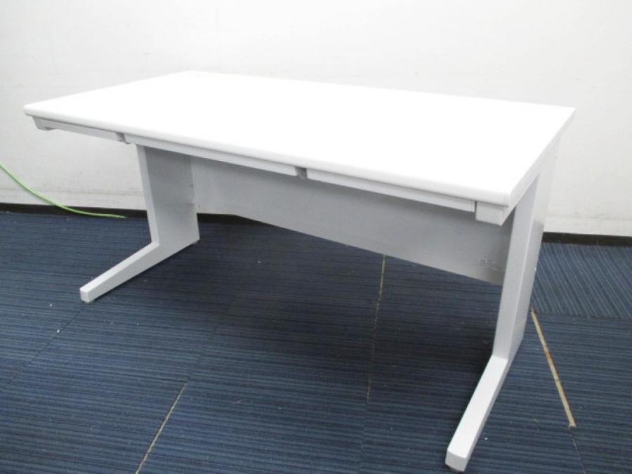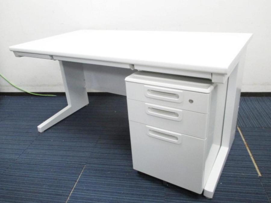 【デスク+ワゴンの片袖机セット!】プラス/ホワイト/片袖机/平机(W1400)+3段ワゴン- 春日部・越谷店