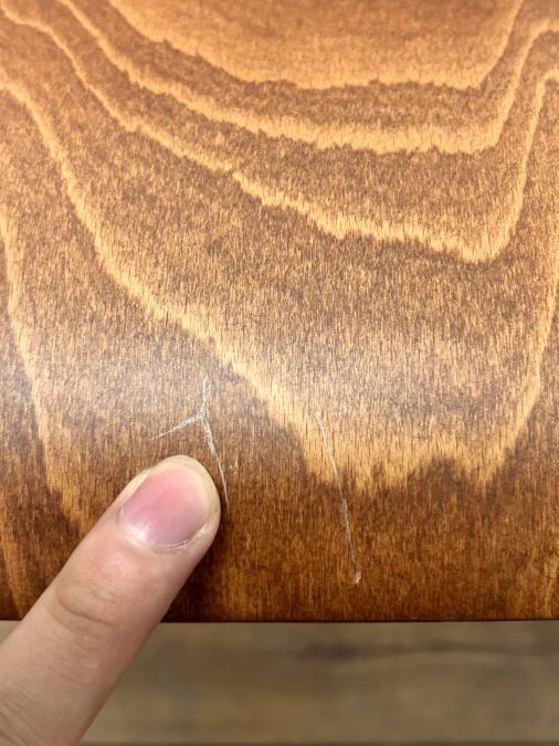 - 目立つ箇所あり傷・破れ・ほつれ・へたり・しわが多数または深い傷・破れ・ほつれ・へたり・しわが一部ある。※座面・背もたれ、シェル、脚部等にある。