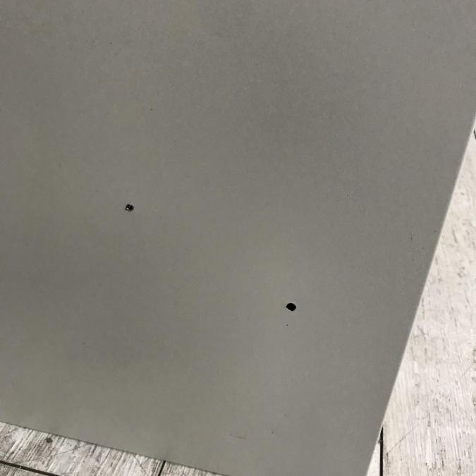 - 目立つ箇所複数あり深い傷・凹みが商品全体にある。(例、天板、正面、背部、サイド部分にある。)