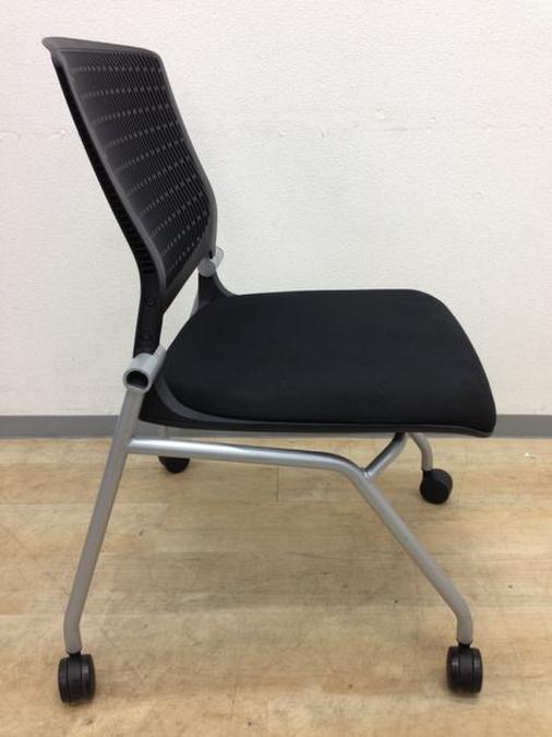 【しなやかにワーカーを受け止める洗練されたデザイン!使わない時は重ねて収納可能!】■オカムラ(okamura)製 グラータ (Grata) 肘無し ミーティングチェア ネスティングチェア ■背面樹脂メッシュ/背パッドなし ■座面:ブラック ■キャスター付