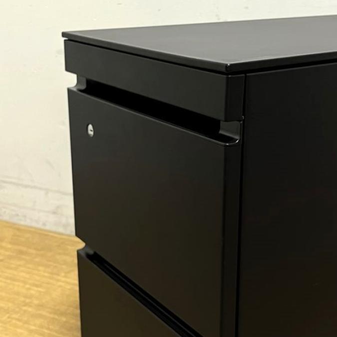 コクヨ GXシリーズ 3段ワゴン フリアドデスク用 人気のブラック A4ファイル×2段 + ペントレー 鍵付き シリンダー錠- 名古屋千種店