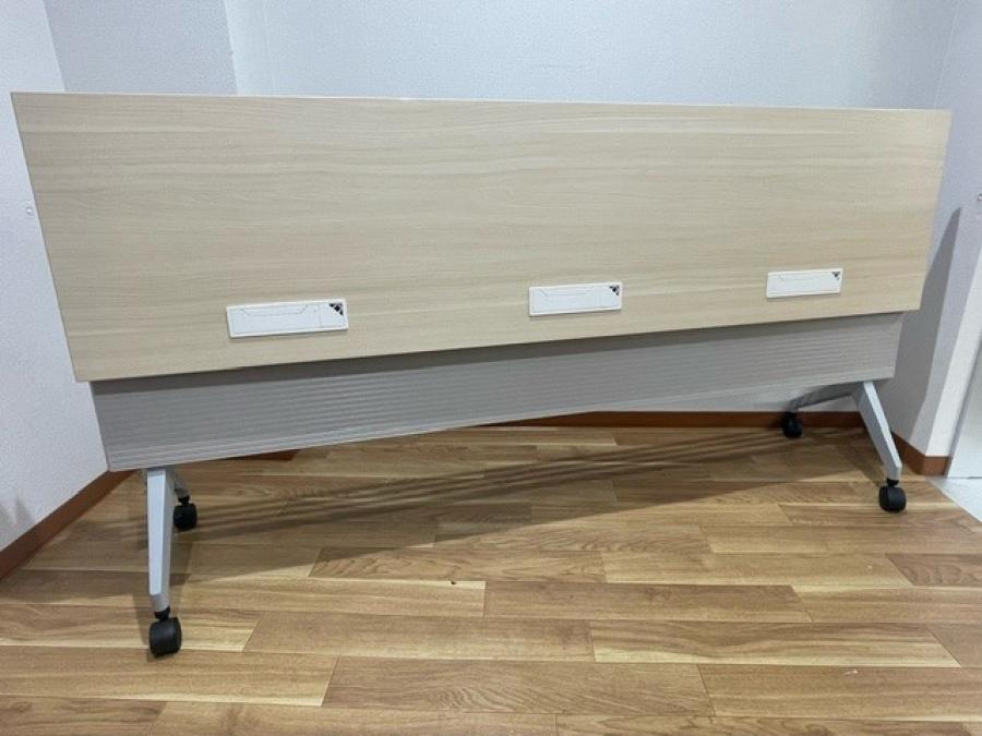 【状態良好!2021年製の内田洋行製】ウチダ パラグラフ サイドスタックテーブル 木目ナチュラル 棚板なし 幕板なし 会議机 収納 折り畳みテーブル セミナー用 福岡 中古家具 安い 九州最大級《オフィスバスターズ福岡博多店は、福岡を拠点として、日本全国へ中古オフィス用品・オフィス家具を提供しております》