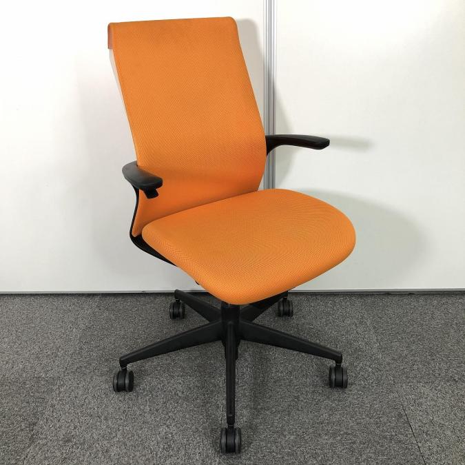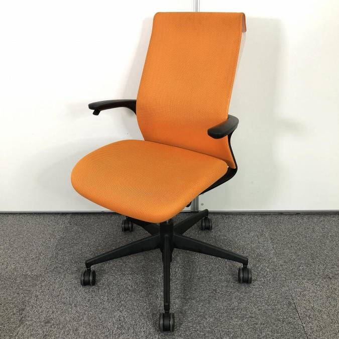 【在庫入替えセール!】【手元で上下昇降が可能でどんな空間・誰にでも、最適で快適フィット!メッシュのような生地感が人気の商品!】■コクヨ(KOKUYO) エムフォー(M4) ハイバック ■固定肘 ■マンダリンオレンジ- 足立・葛飾店