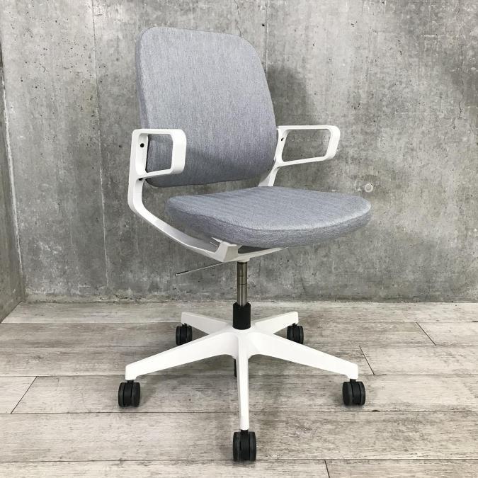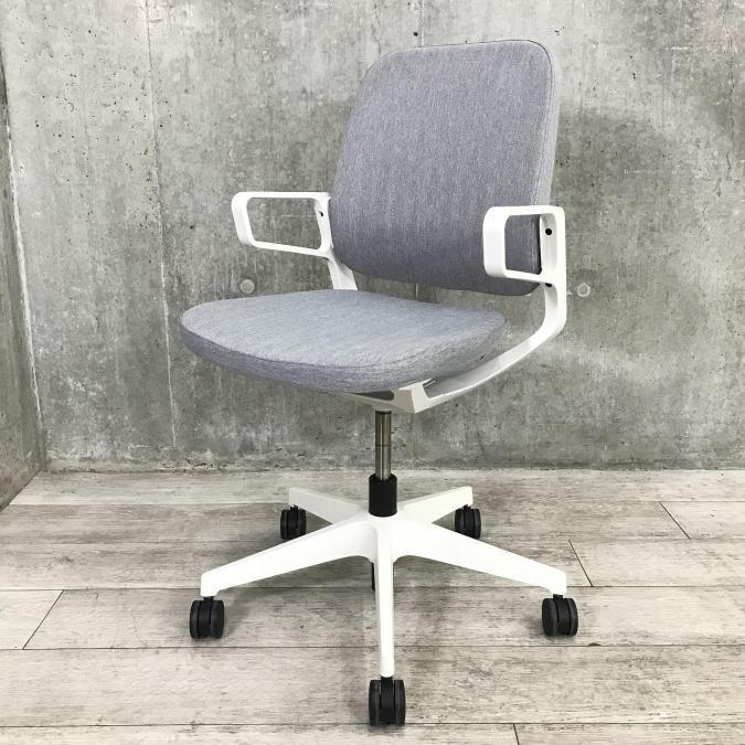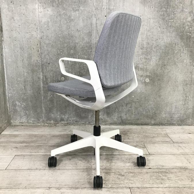 【様々な空間にフィットするスマートなデザイン】【デスクワークにもミーティングにも】■ITOKI(イトーキ)製 レヴィチェア ミーティングチェア ■固定肘 ■グレー×ホワイト- 足立・葛飾店