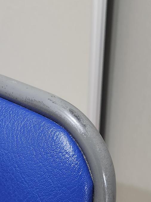 - あり黄ばみ・変色が広い範囲にうっすらある、または濃い黄ばみ・変色が一部ある。(例、座面・背もたれ、脚部等にある。)