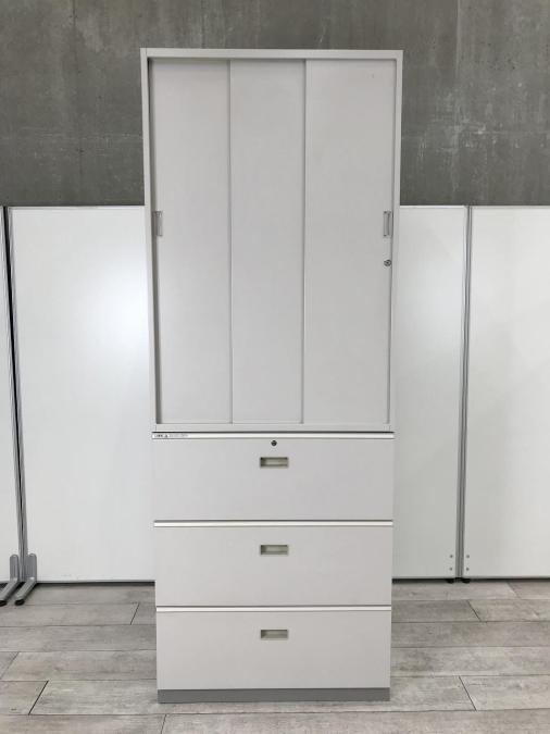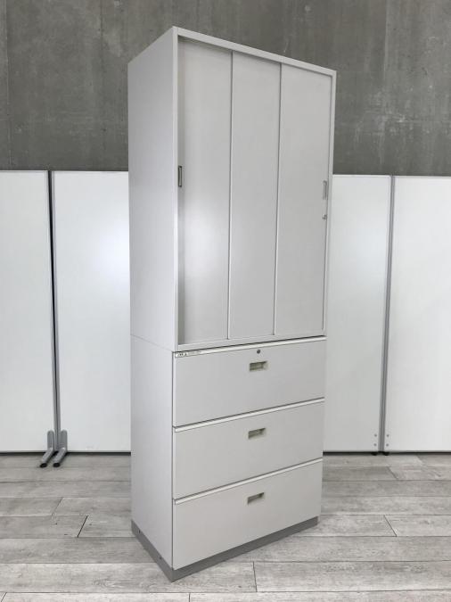 レアな引違い+3段ラテラルの書庫セット!特殊形状で逆に使い勝手抜群!? ■イトーキ/シンライン/ニューグレー 鍵付き シリンダー錠- 立川・八王子店