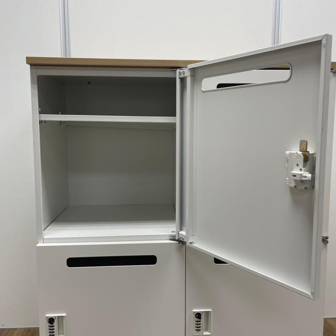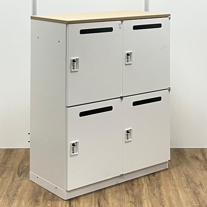 イトーキ製 シンラインシリーズ ホワイトカラー ダイヤル錠式 投函口 ナチュラル天板 フリーアドレスやコワーキングオフィスの相棒! 4人用パーソナルロッカー!!※非常解除キーは、付属しておりません- 京都東寺店
