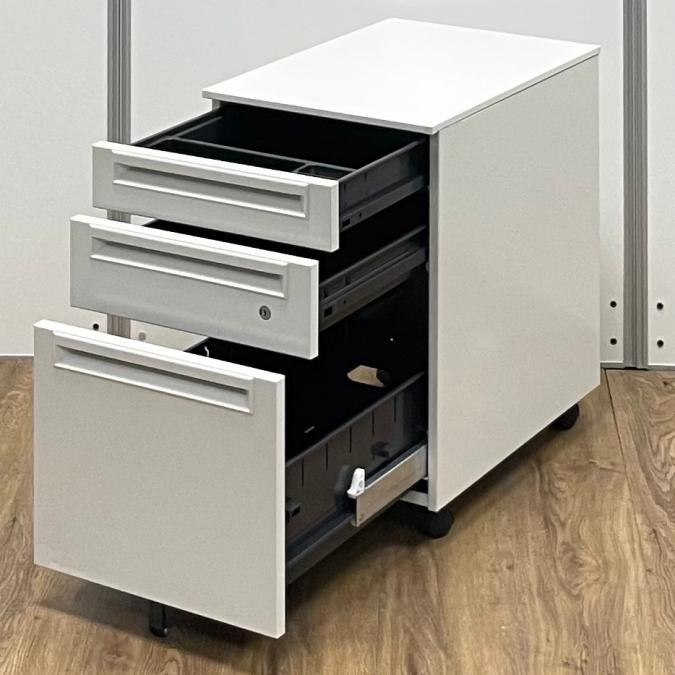 一部不具合ありその脇机・ワゴンの本来の効用を果たすための機能以外の一部が使用不可な状態。(例、引出が開閉しづらい、 キャスターロック機能使用不可、ラッチ不良 等がある。)